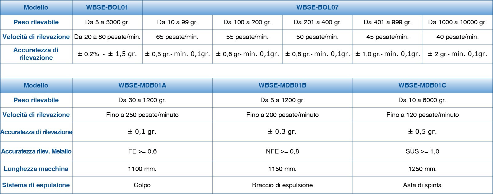 Disponibile anche versione con metal detector in linea abbinato (WBSE-MDB01x).