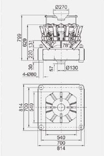 Bilancia multitesta a 10 o 14 teste per prodotti generici di piccolo calibro per pesate ad alta precisione, grazie a cestelli appositamente studiati per permettere un'accuratezza fino al 2° decimale.