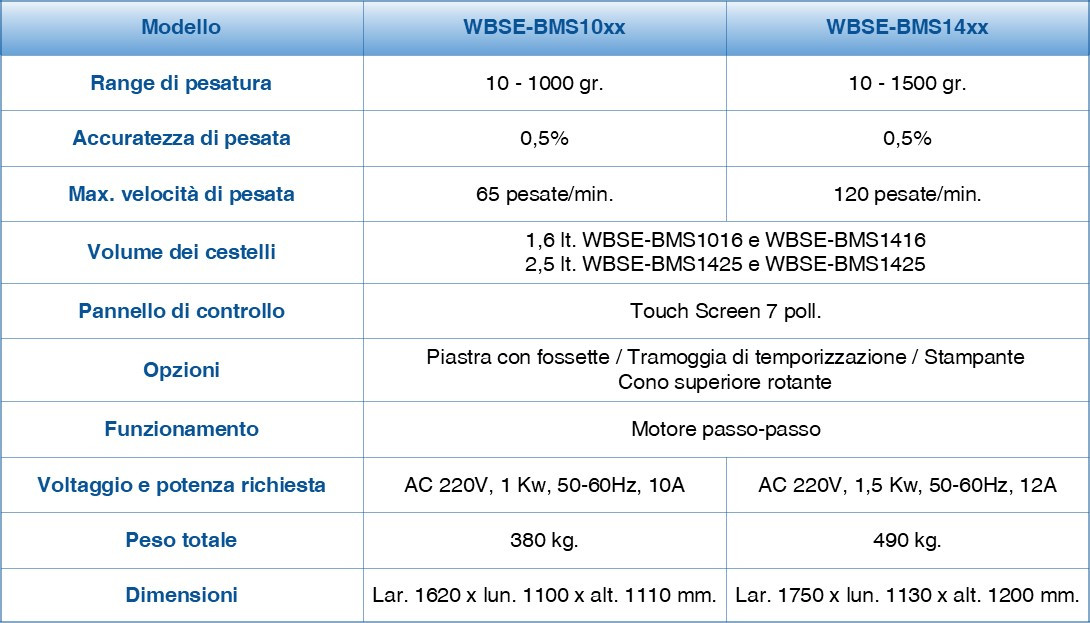Bilancia Multitesta circolare 10-14 teste WBSE-BMS10xx o WBSE-BMS14xx per Surgelati