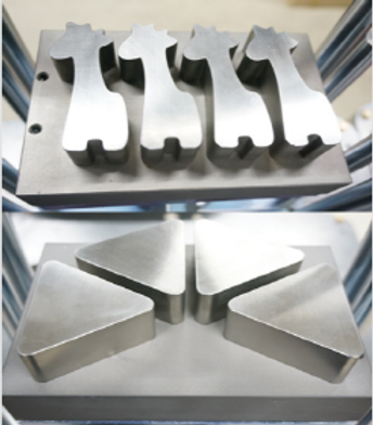 Sopra: esempi di stampi (prima del trattamento al nitruro di titanio)