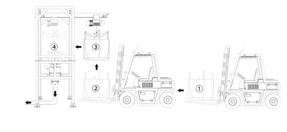 Indispensabile nel caso si lavorino grandi quantità di materiale granulare o in polvere, alimentari o no, in big bag fino a 500 o 1000 kg, ma anche oltre.