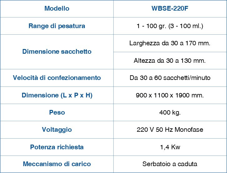 La confezionatrice WBSE-220F è autosufficiente: basta inserire la spina, caricare il materiale da confezionare e la pellicola da confezionamento ed è pronta per partire, regolando in maniera facile da pannello di controllo la lunghezza della confezione ed il peso del materiale.