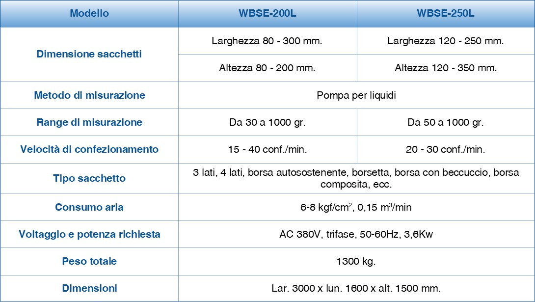 Linea completa di confezionamento WBSE-200/250 per liquidi